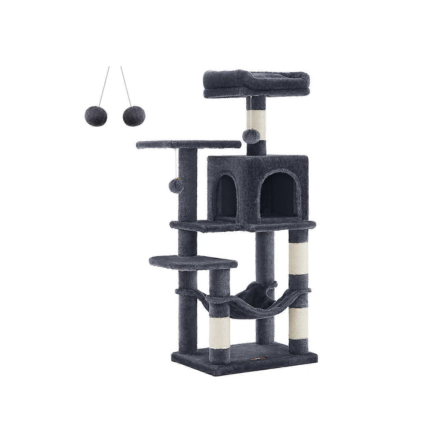 Homestorecity kattenboom met krabpaal, klimboom voor katten, 138 cm hoog, met grot en rustplaatsen, in lichtgrijs PCT60W - - Kleur: rookgrijs Materiaal: spaanplaat, pluche, sisal Afmetingen: 45 x 35 x 112 cm (L x B x H) Gewicht: 10 kg Maximaal statisch totaal draagvermogen: 40 kg Ideaal aantal katten: tot 4 (elk ≤ 5 kg)