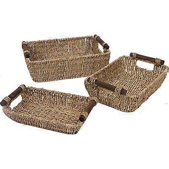 Seagrass & Wood Handled Baskets by (Set of 3)