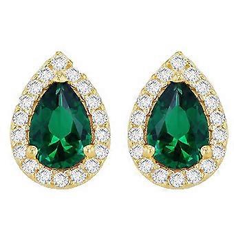 Classic Pear Emerald & Diamond Tear Drop Stud Earrings in 9ct Yellow Gold 135E1575039 Gemondo