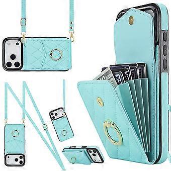 For Apple iPhone 17 Pro Crossbody Faux Leather Rhombic Case Turquoise Wigento