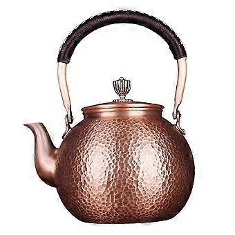 Copper Tea Kettle - Handcrafted Hammered Copper, Long Handle Safety Grip, Retro Chinese Teapot