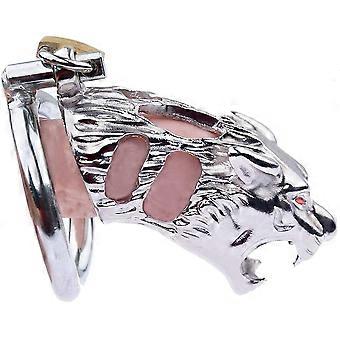Tiger Head Stainless Steel Male Chastity Cage with Secure Magnetic Lock, 45mm Ring for Beginners