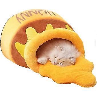 Honey Pot Shape Plush Cat Bed with Removable Washable Cushion for Small Indoor Cats