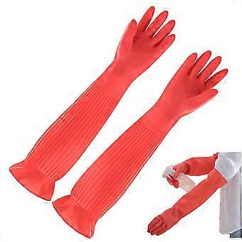 Waterproof Latex Dishwashing Gloves with Rubber Sleeve, Long Reusable Kitchen Cleaning Gloves
