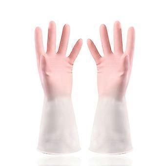Rubber Cleaning Gloves Waterproof WearResistant for Kitchen Dishwashing Gardening Pet Care Pink