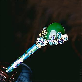 Vintage Enamel Hair Stick with Rhinestones Retro Floral Hairpin for Women Elegant Updos