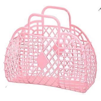 Light Pink Beach Tote Bag with Handle, Plastic Jelly Basket for Toy and Gift Storage