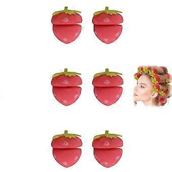 Strawberry Heatless Hair Curlers Soft Sponge No Heat Rollers for Overnight Curl Styling Pink 6pcs