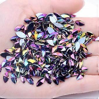 Nail Art Rhinestones Black AB Horse Eye 5x10mm Flatback Acrylic Gems Sparkling Leaf Stones 50pcs