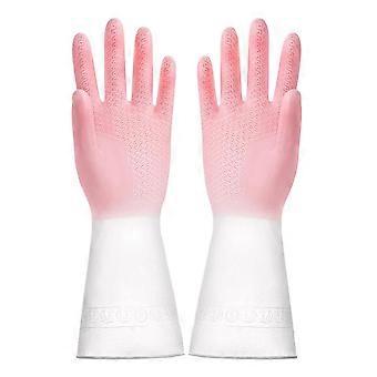 Rubber Dishwashing Gloves Colorful Waterproof NonSlip Grip Reusable Household Cleaning Pink