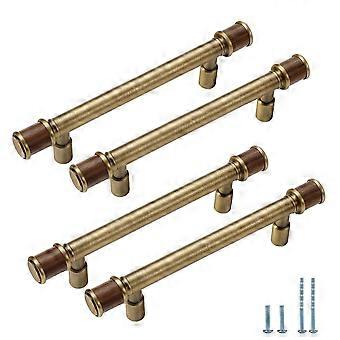 4 Pcs 3.78 Inch Antique Copper Cabinet Handles with Durable CopperWood Build for Kitchen Drawers