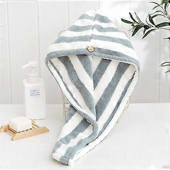 Gray Microfiber Hair Towel Wrap for Women Quick Dry with Button Fast Absorbent for Long Hair