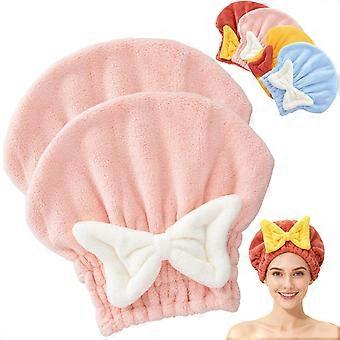 Hair Drying Towel with Bow, Super Absorbent Microfiber Wrap for Fast Drying Shower Bath, 2pcs Pink