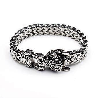 Norse Viking Wolf Bracelet Men's Stainless Steel Mesh Chain Open Wolf Mouth Talisman Jewelry Adjustable Size