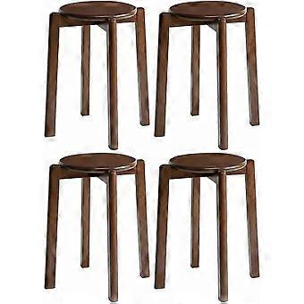 Set of 4 Vintage Round Stackable Stools, SpaceSaving Brown Reception Seating