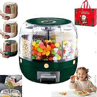 Rotating Food Dispenser 360° Six Compartment Airtight Large Capacity Snack and Grain Organizer Dark Green