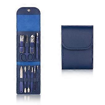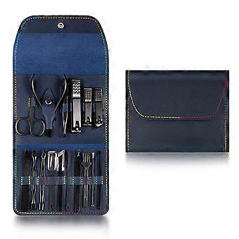 10 Piece Stainless Steel Manicure Pedicure Set with RustResistant Blades and Blue Leather Case