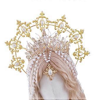 Pearl Crown Bridal Tiara Headband with Elegant Baroque Gold Design for Wedding and Party
