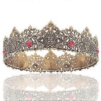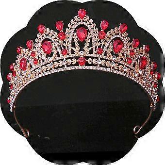 Gold Red Crystal Crown for Women Wedding Bridal Princess Tiara with Sparkling Rhinestones