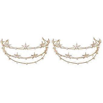 Bridal Tiara and Princess Crown Headband 2 Pack with Crystal Rhinestones for Wedding Veil