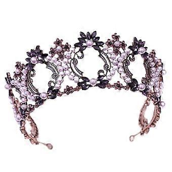 Bronze Black Purple Crystal Bridal Tiara with Pearls and Rhinestone Wedding Crown Headband