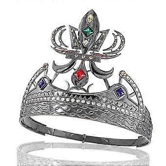 Crown Tiara with Colourful Crystals, Vintage Black Silver Crystal Crown for Women and Men Party