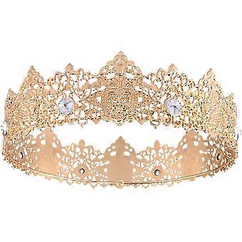 Royal Crown with Sparkling Crystal Tiara for Wedding Pageant Medieval King Queen Adjustable Fit