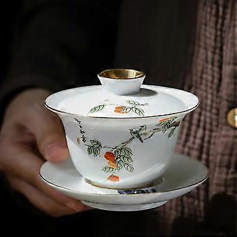 Chinese Gaiwan Tea Set 2pcs White Porcelain 110ml Tureen with Lid and Saucer for Loose Leaf Tea