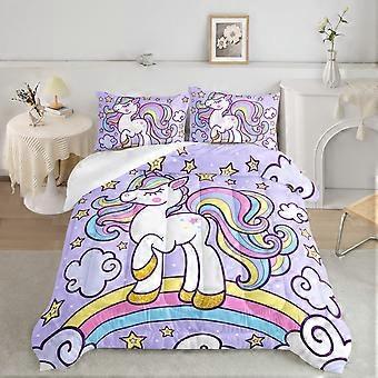 Unicorn Bedding Set Queen with Stars and Clouds, Purple Comforter and 2 Pillowcases for Girls Teens