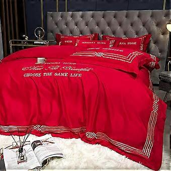 Lyocell Bedding Comforter Set with Grace Embroidery, Cooling Silky AllSeason Sheets, 4 Piece Queen Blue or King Red