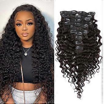 30 Inch Deep Wave Clip In Human Hair Extensions for Women, Virgin Hair, Natural Color 160g 10pcs