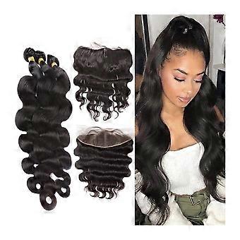 Brazilian Body Wave Virgin Human Hair Bundles with 13x4 Preplucked Lace Frontal, Full Volume