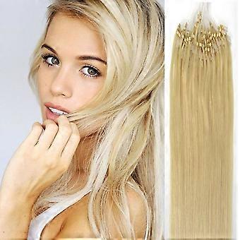 22 Inch Micro Loop Remy Human Hair Extensions 50 Strands 613 Light Blonde Seamless Natural Blend