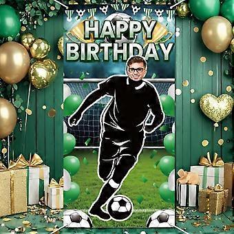 Football Happy Birthday Photo Banner Decoration 2.9x5.9 Ft Soccer Party Photography Backdrop Large Fabric Sports Face in Hole Hanging Door Cover Banne