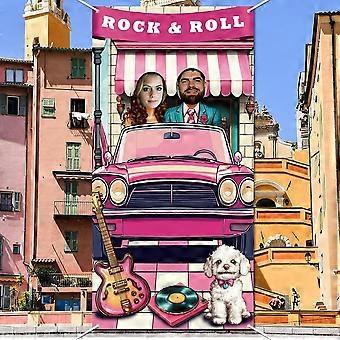 50s Party Decorations Door Banner 50's Theme Party Rock and Roll Background Phtography Backdrop 50s Retro Cars Face in Hole Booth Props for Birthday P