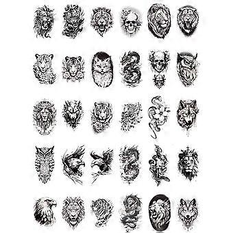 30pcs Small Animal Temporary Tattoo Stickers for Men and Women, Waterproof Tiger Wolf Dragon Snake Designs
