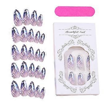 Press On Nails 24pcs Glossy Almond Shape False Nails Kit with Glitter for Women and Girls