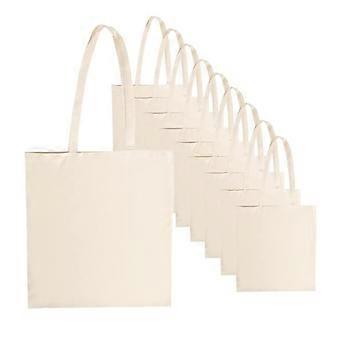 Pack of 10 Natural Cotton Tote Bags with Long Handles, Reusable EcoFriendly Shopping Bag