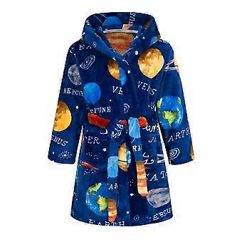 Kids Hooded Flannel Robe Warm Soft Plush Bathrobe for Girls and Boys Ages 910 Blue Planet