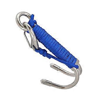 Stainless Steel Dive Hook with Safety Rope and O-Ring | Durable Cave Diving Hook for Underwater Adventures and Photography, Blue