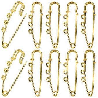 30pcs Stainless Steel Safety Pins with 3 Loop Golden 50x14.6x1.5mm