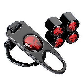 Skull Tire Valve Caps 4PCS with Wrench Keychain, Dustproof Wheel Stem Covers for Car SUV Bike Motorcycle