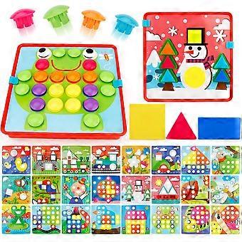 Button Art Set for Toddlers, 2 in 1 Mosaic Pegboard, Color Matching and Shape Learning, 72 PCS