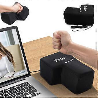 USB Enter Key Pillow Stress Relief Design, Giant Black Desk Cushion, Plug and Play for Adults