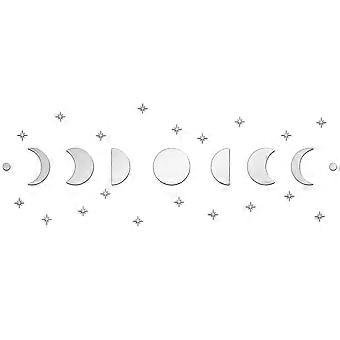 Acrylic Wall Stickers for Home Living Room Bedroom Decoration Square with Moon Phase and Star Pattern Silver 250x250mm 4pcs/set
