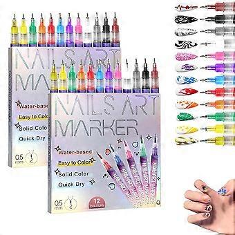 12 Colors Nail Art Pens Set with Precision Metallic Tip for DIY Designs, Quick Dry 2PCS