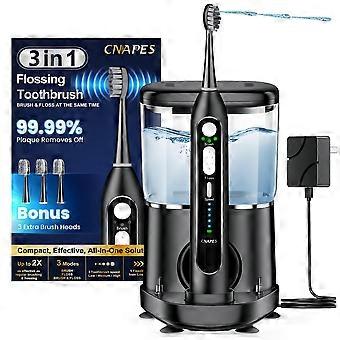 3in1 Electric Toothbrush with Water Flosser, Black Rechargeable Sonic Cleaning for Adults with Travel Case