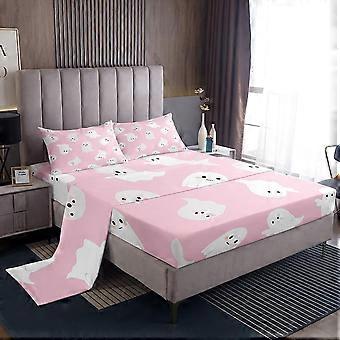 Kawaii Ghost Sheet Set Queen Size, Cute Pink Halloween Bed Sheets with Deep Pocket Fit for Kids and Teens