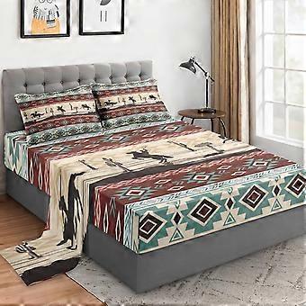Queen Size Cowboy Bed Sheet Set with Pillowcases, Vintage Western Microfiber Bedding for Bedroom