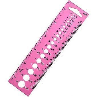 Knitting Needle Gauge and Crochet Hook Size Ruler, Pink Plastic AllinOne Inch Measuring Tool for Sewing and Crafts
